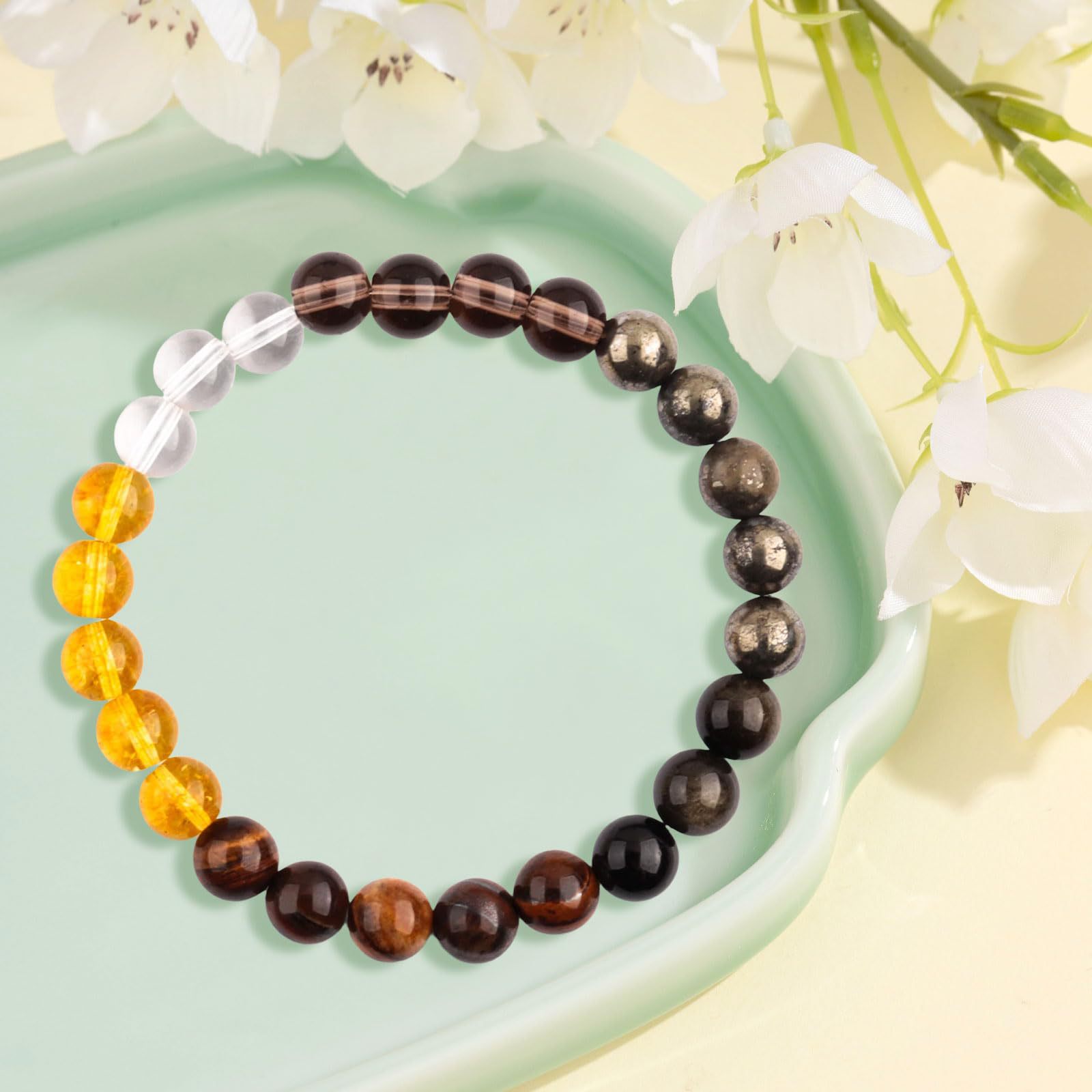 Natural Stone Bracelet Crystal Chalcedony Beaded Elastic Cord Bracelet Motivational Gift 8mm Mixed Color Chalcedony Yoga Bracelet